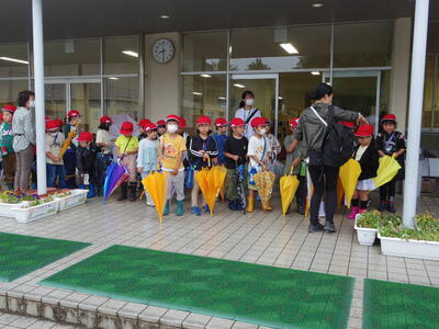 前庭で、1・2年生一緒に遊ぶこととなっていましたが、あいにくのお天気