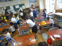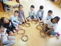 昨日の生活科の学習では、朝顔のリース作りに向けて、つるを輪状にしました。つるを支柱から外したり輪状にまとめたりする作業が難しかったですが、ボランティアの方々の協力のおかげで、無事に終えることができました。出来上がると、とても嬉しそうな様子で冠のように頭にのせたり、飾りつけのイメージをしたりしていました。飾りつけをして、リースが完成するのが楽しみですね。