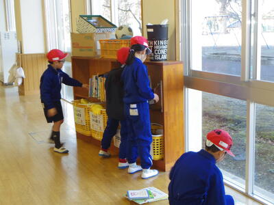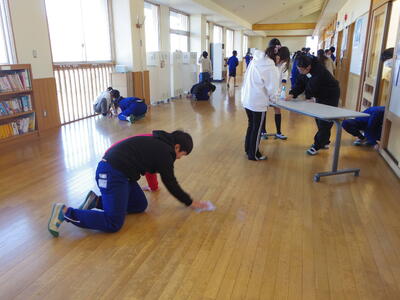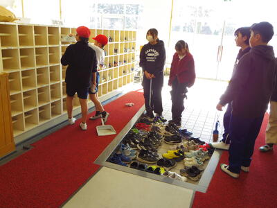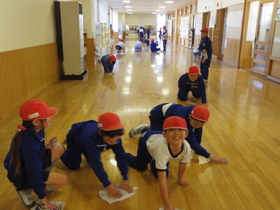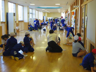 5校時に、大掃除を行いました。今回は廊下のワックスがけを行うので、どの学年も念入りに掃除をしていました。また、靴箱や廊下のロッカーの中など、いつもは手が回らないところまできれいにしていました。しかし、張り切って靴箱掃除をしたものの、出した靴が誰の物だかわからなくなってしまい困ってしまった場面も・・・。近くで掃除をしていた上級生が心配して声をかけていました。その後、無事解決したようです