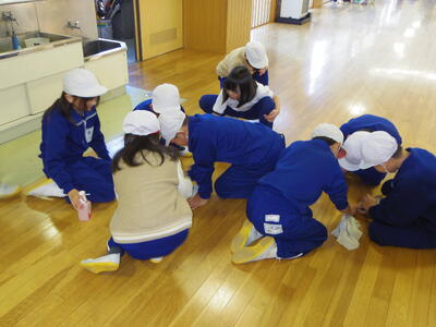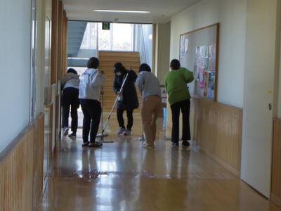 1学期末には、教室のワックスがけを行いました。2学期は、廊下のワックスがけです。今回は、5名のボランティアの皆様が協力してくださいました。ボランティアの皆様ありがとうございました。