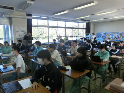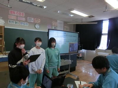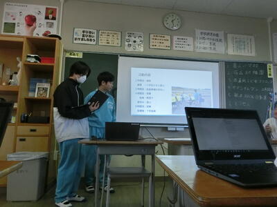 本日は「マイチャレンジ発表会」が午後に開催され、1年生が来年の展望のため見学に来ていました。2年生は各グループでスライドや原稿を用意し、何を学んだのか、何が難しかったかなど、当時を振り返る姿がみられました。