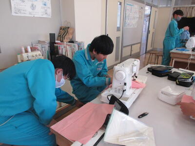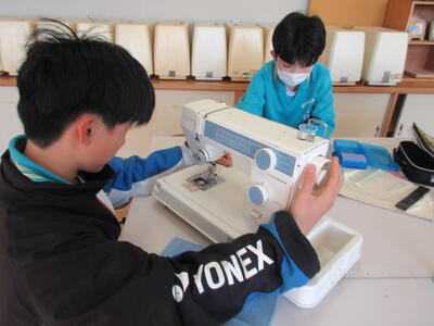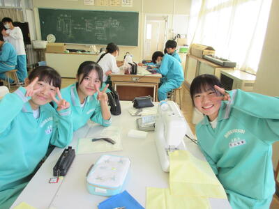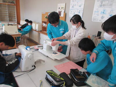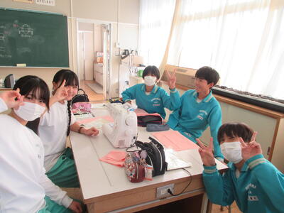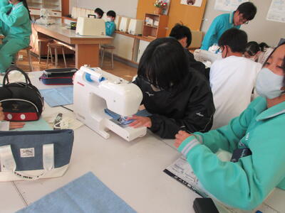 そして、2年生はミシンを使って何やらグループでデザインしたものを作っていました。全員が楽しそうに、笑顔で楽しんでいる様子が見られました。