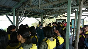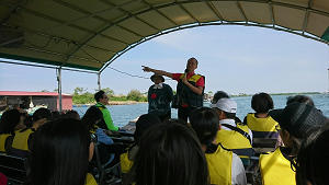 筏のような船に乗り、古式漁法の体験や野鳥やマングローブの観察をしました。