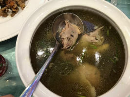 とってもおいしいけど、とさか(鶏冠)も足も入ってます。台湾の人たちは、躊躇なく