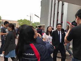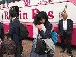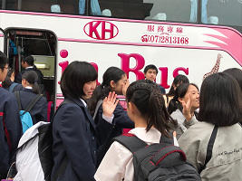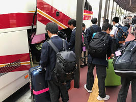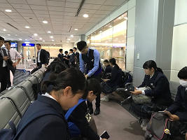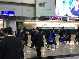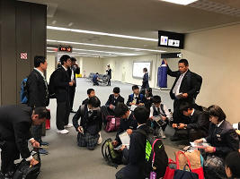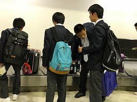 生徒達は、ホストファミリーに送られて正心中に集合します。