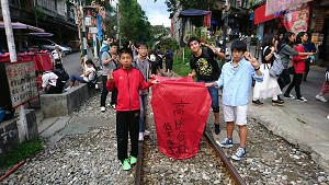 午後は十份で天燈上げをします。台湾観光で人気なようです。