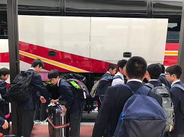 17時到着(帰校)予定です。【道路の込み具合で、多少前後するかと思います】