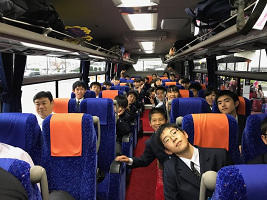 15時にはバスに乗り込み、成田を出発。真岡に向かいます。
