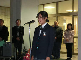 正心中生徒、代表あいさつ。日本語の原稿を暗記して述べてくれました。