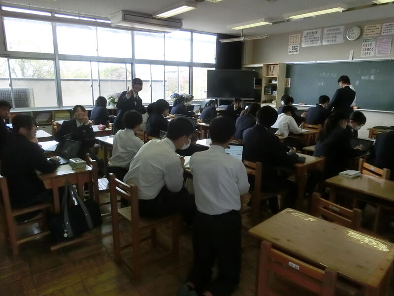 本日は「マイチャレンジ発表会」が午後に開催され、1年生が来年の展望のため見学に来ていました。2年生は各グループでスライドや原稿を用意し、何を学んだのか、何が難しかったかなど、当時を振り返る姿がみられました。