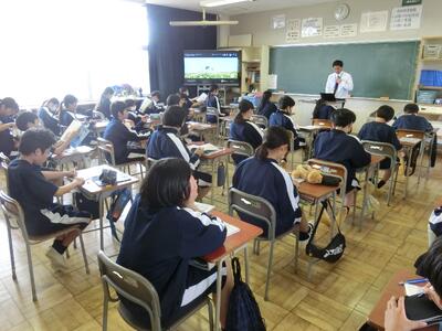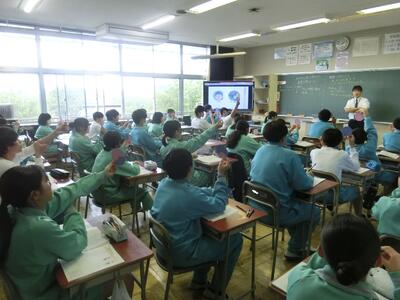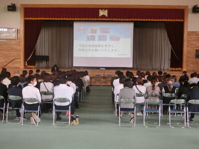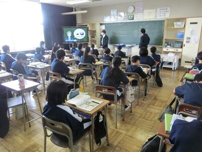 リモートで交通安全に関するクイズが出題され、各クラス一生懸命問題に答えていました。