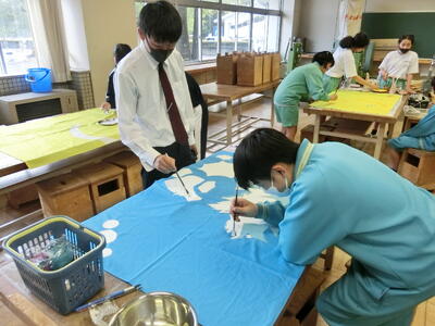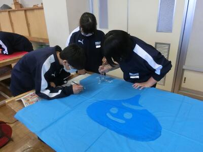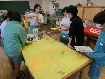 そして、2年生はミシンを使って何やらグループでデザインしたものを作っていました。全員が楽しそうに、笑顔で楽しんでいる様子が見られました。