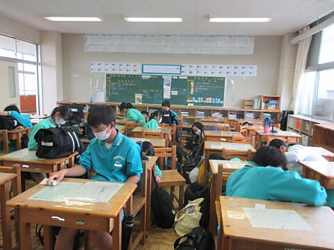 本日は1年生と2年生の真岡市総合学力調査が行われました。