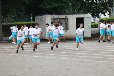 そんな中3年生は、女子が1000m走、男子は1500メートル走の計測をしていました。全員が全力で自己新記録を目指している姿、走り終わっても仲間の応援を欠かさずする姿。今日の天気にふさわしい素敵な姿が多くみられました。