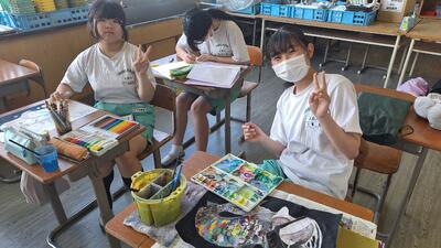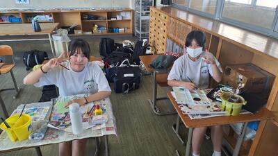 そして、2年生はミシンを使って何やらグループでデザインしたものを作っていました。全員が楽しそうに、笑顔で楽しんでいる様子が見られました。