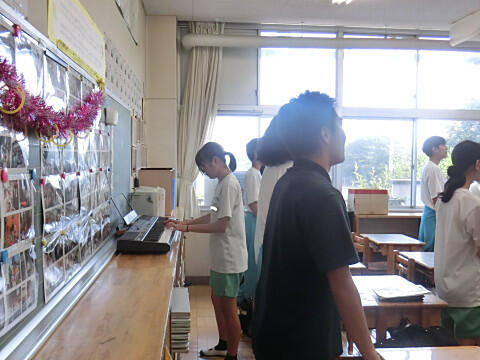 リモートで交通安全に関するクイズが出題され、各クラス一生懸命問題に答えていました。