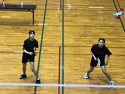 個人戦の結果、女子ダブルス2ペアが県大会に出場することになりました(今回は、参加人数削減のためシングルス、ダブルスともに上位4組しか県大会に出場できません。よく頑張ったと思います!)