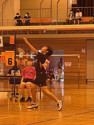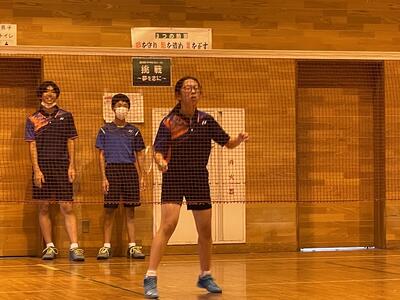 感染対策としての試合時間短縮のために、本来21点マッチのところ、各ゲームが15点までになりました。西中の選手は、速い試合展開の中、先制を目指して積極的にプレーしました。