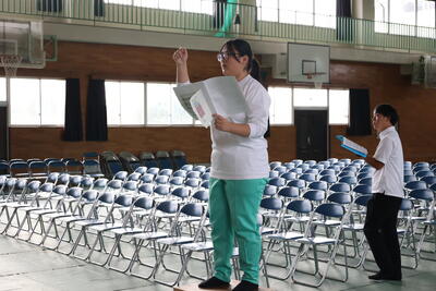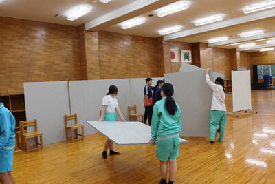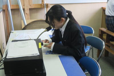 その中で生徒会の生徒たちは、次期生徒会の応援演説の準備のため、たすきの作成に取り掛かっていました。昨年度の先輩方のものを参考にしながら、自分たちには何ができるか話し合っているところが印象的でした。