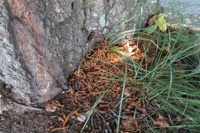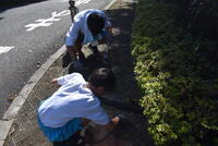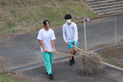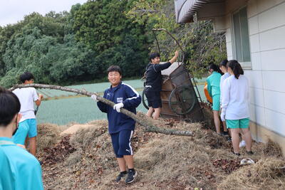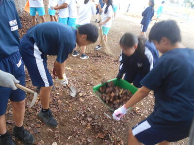 大量の落ち葉を協力して片づけてくれています!ありがとう!