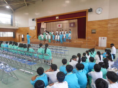 今週の朝会は、校長講話です。