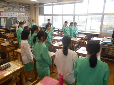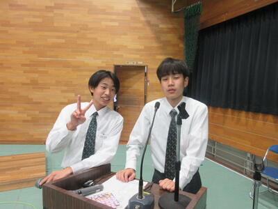 給食時に全校生徒に向けての挨拶!