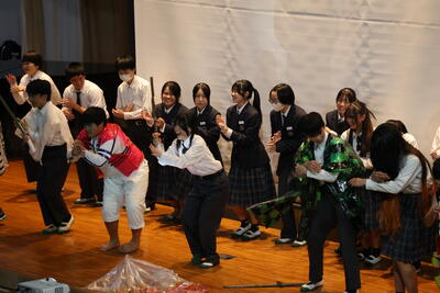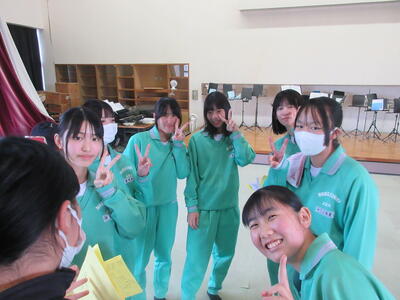 お絵描き伝言ゲームやビンゴ大会など、2年生が考えたゲームを楽しみながら、これから受験等で忙しくなる3年生たちにエールを送りました。