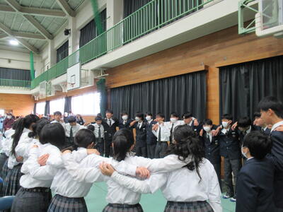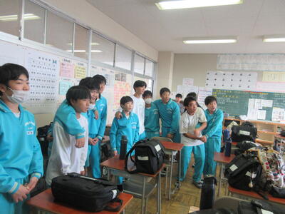 最終日にサプライズをしようと、ひそかに計画していた3年生。見事に成功し、最後は全員でアーチを作り、笑顔で送り出していました。