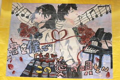 この作品は10月25日に行われた文化祭に向けて、アート部の1年生と2年生が全員で協力して制作した作品です。