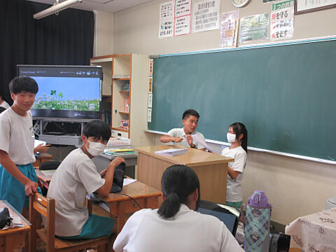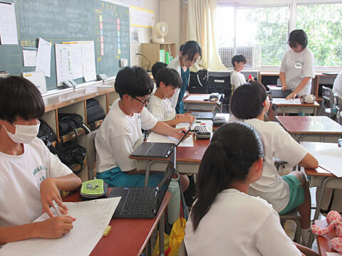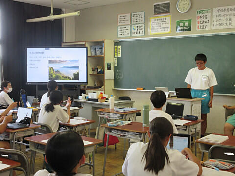 本日は「マイチャレンジ発表会」が午後に開催され、1年生が来年の展望のため見学に来ていました。2年生は各グループでスライドや原稿を用意し、何を学んだのか、何が難しかったかなど、当時を振り返る姿がみられました。