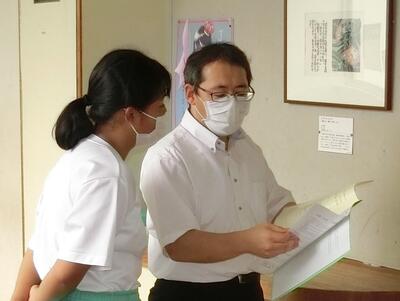 午後になり、Bグループの生徒が登校しました。午前のAグループ同様、学級ごとに生徒の体調確認を行いました。