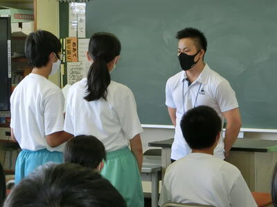 1校時はコロナウィルス感染症予防対策、2校時は総合の授業を聞きました。