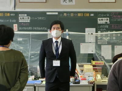 11月2日から学習指導支援員として野沢先生が着任しました。(野沢先生は、先月教育実習生として本校で学んだ大学4年生。また、本校の卒業生です。)