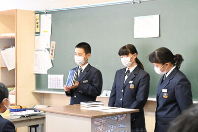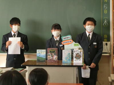 5日(木)、朝読書の時間に図書委員による「ブックトーク」が行われました。