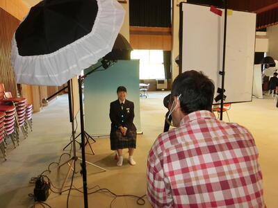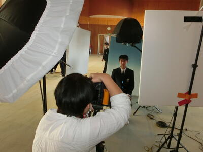 卒業アルバムの個人写真の撮影を行いました。3年生一人ひとり、「ピシッ」と背筋を伸ばし、凜々しくも笑顔で撮影しました。