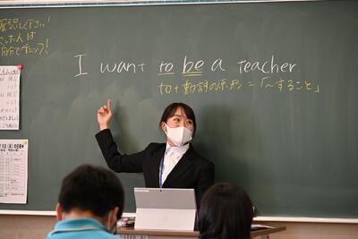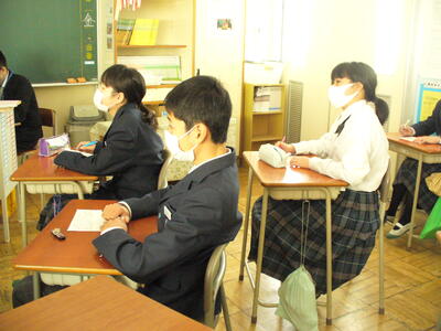 授業の最後には自作した英文を発表しました。生徒たちは意欲的に学習に取り組んでいました。