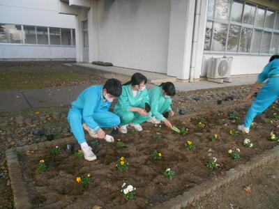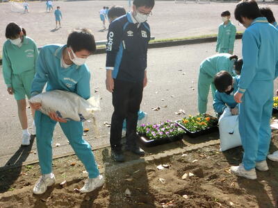 12日(木)、環境委員会の生徒たちで花壇の手入れを行いました。