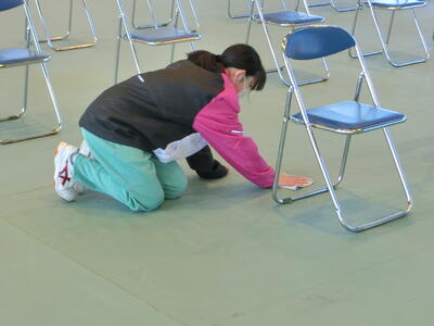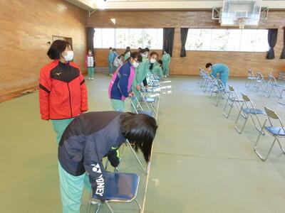 5日(金)、来週行われる卒業式の会場準備や校内の清掃を1・2年生が行いました。3年生にとって義務教育の最後を飾る卒業式を気持ちよく迎えてもらおうと、心を込めて行いました。体育館の会場は2年生が中心となって進めました。