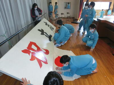 来週に迫った卒業式。3年生に素晴らしい会場で卒業証書を受け取ってほしい、そして思い出の校舎を旅立ってほしいと、1・2年生は心から願い、応援しています。