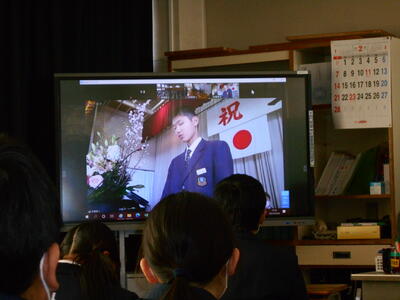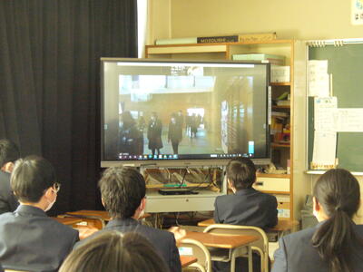 25日(木)、卒業を間近に控えた3年生に感謝の意を伝える「3年生を送る会」を行いました。今年は感染症対策のためICT機器を活用したスタイルで実施しました。各学級毎にメッセージ動画を作成し、3年生に感謝の気持ちを伝えました。