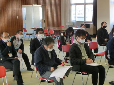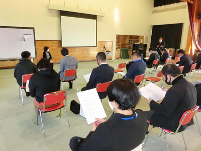 式後、春休みの過ごし方について、学習担当・生活担当職員からの話。しっかりした態度で聞きました。