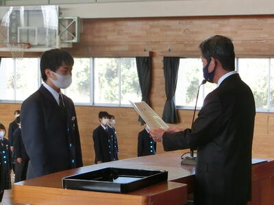 1年、2年の各代表生徒が「修了証書」を受け取りました。