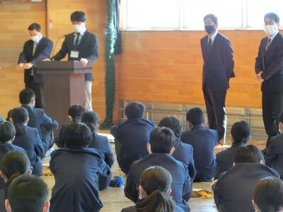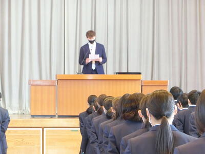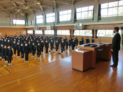 式後、春休みの過ごし方について、学習担当・生活担当職員からの話。しっかりした態度で聞きました。