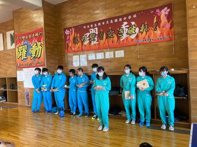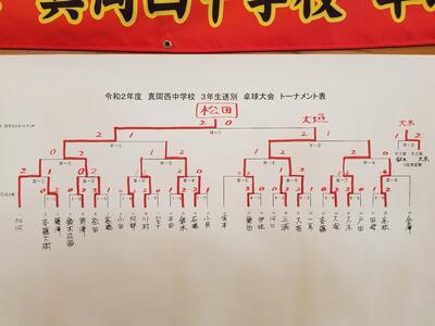 お世話になった3年生と送別卓球大会を行いました。激戦が繰り広げられ、優勝は3年松田くん、準優勝は3年大垣くん、3位は3年大木さん、敗者復活1位は2年石場くんでした。