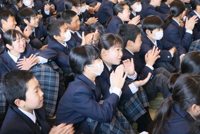 拍手を送る生徒たち。「今年1年、よろしくお願いします」の声もありました。