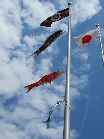 学校の鯉のぼりも、気持ち良さそうに泳いでいます。