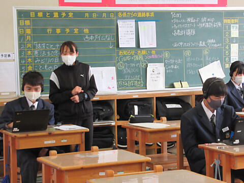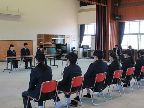 生徒会役員や各種委員会の委員長が、今年の活動内容について発表をしました。