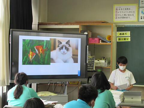 各学年の代表者が1学期頑張ったことや夏休み頑張りたいことなどを発表しました。