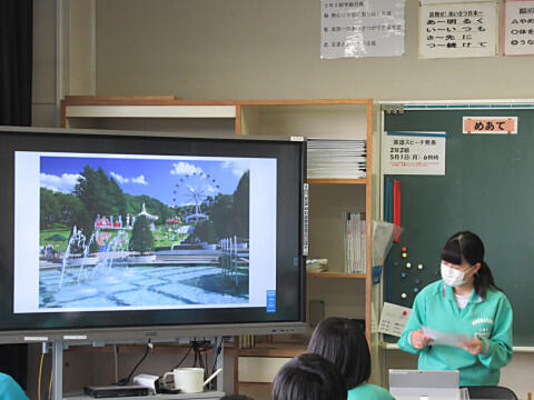 早速、英語の授業では、各自スライドを作成し、「思い出」「宝物」についてスピーチ発表を行いました。