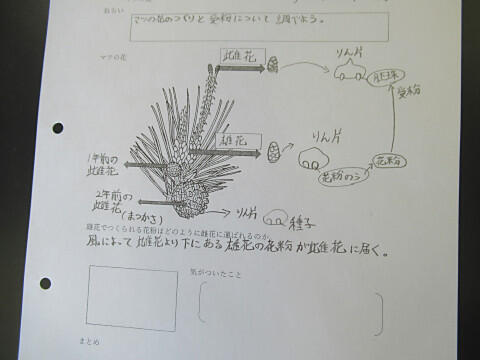 今日の学習課題は「マツの花のつくりと受粉の仕方について知ろう」です。